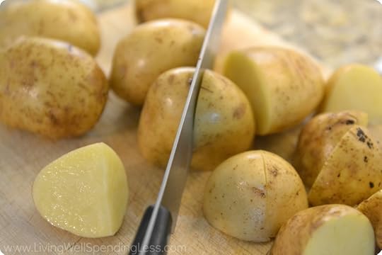 Step 1: Cut potatoes into chunks, then boil until tender, about 20 minutes.