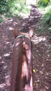 I always thought these trail horses were bombproof, but I guess that is not always the case. As we continued our ride, Ryan told us stories of Maui and Hawaiian traditions, pointed out different trees and flowers and basically kept us entertained the whole time. I was wondering why they had placed me on Vigo, because he was extremely well behaved most of the ride. Lady Gaga was being a little bit of a pill bringing up the rear, but my niece was handling her little tantrums well. Just as we were getting to the end of the ride, Kona, the horse ahead of Lady and behind Vigo got a little too close to me. Vigo laid his ears back humped his back and gave fair warning that Kona should get the heck away from his tail! I guess a less experienced rider may have had a hard time with Vigo, but I reprimanded him and moved on like it was no big deal and Ryan again reiterated how nice it was to have good riders for a change.