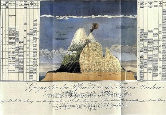 Famosa imagen del volcán Chimborazo, reproducida en el ‘Tableau physique‘ original y muestra todas las características físicas, climáticas y ecológicas del volcán. Más de 200 años después se ha demostrado que Humboldt tenía razón. El cambio climático existe y es por razones de la actividad humana. Fuente: wikipedia. Dominio públicoHa visto plantas tropicales, coníferas, robles, liquen. Y encuentra semejanzas con la vegetación europea. Y empieza a atar cabos. Todo está relacionado. El mundo está interconectado. La fuerza de la vida es una sola y recorre todo el planeta. Humboldt ve todo como una fuerza global. Es el primero en hablar de cambio climático. Y su dibujo del volcán Chimborazo inspiró a personajes tan disímiles como Charles Darwin o Simón Bolivar. Mucho antes de que se desarrollara la teoría de las placas tectónicas, Humboldt ya vio esa ese antiguo nexo entre Africa y América.