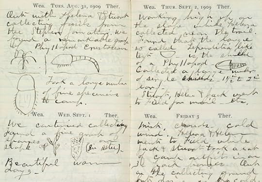 Cuaderno de campo de De Charles D. Walcott (photo by Brian Boyle) – Royal Ontario Museum from Smithsonian Institution Archives, Accession 10-166, Walcott, Charles D, (Charles Doolittle), 1850-1927, Charles D. Walcott Collection, Dominio público.Ahora hay algo que llaman mindfulness (suena un poco a verso cuando lo decimos en inglés) pero en realidad es la vieja idea de concentrarse en algo que te haga feliz y al mismo tiempo te relaje. Uno se calma cuando observa. Cuando entiende. Y esa alegría que da el campo y el ejercicio no tiene precio. Por eso, animo a todos los padres a que sus chicos tengan un cuaderno en donde vayan registrando lo que ven en la naturaleza. Tienen que observar, prestar atención, ser pacientes.