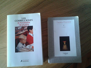 Y un libro me lleva a otro. Estos dos son los siguientes. Todo culpa de Foster Wallace.Solo me queda la sensación agridulce, una vez más, de que los grandes escritores son seres egoístas que no tienen una familia que mantener. Personajes dedicados en cuerpo y alma a escribir. Y una vez más me pregunto si otro mundo es posible. Si se puede escribir y estar en contacto con lo más mundano. Las obligaciones. Los amigos. La familia. El mercado y la televisión. Y ahora me enfrento a otros desafíos que me esperan: V de Pynchon, su gran maestro y Las correcciones de Jonathan Franzen, su gran amigo, su confidente y su rival literario. Y siento envidia otra vez. Yo no tengo amigos escritores, y de ese calibre, con los cuales compartir inquietudes. Aunque pensándolo bien, mucho mejor. Están pasando demasiadas cosas en el mundo como para detenerme a charlar con otro escritor.