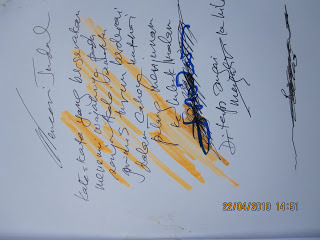 Tadi siang sedang saya mengemas buku diari dan buku catatan yang lain , saya terbuka halaman yang ditulis oleh Penyair Indonesia, Taufiq Ismail, 13 tahun yang lalu sewaktu kami bersama di Pulau Besar, Melaka. Buku itu masih rapi, baik, dan jelas menyimpan puisi Taufiq. Dengan kami ada tiga peserta penyair lain Kazuko Shiraishi ( penyair wanita terkenal Jepun), Dr. Siti Zainon Ismail, Dr Muhammad Haji Salleh yang menjadi penyelaras begkel untuk kami belajar menulis bentuk puisi tradisional Japun, yakni Renga.Itu semua berlaku pada Mac '98. Begini tulis Taufiq dalam buku catatan saya: