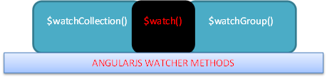 AngularJS 1.3 release candidate provides $watch(), $watchCollection() and $watchGroup() method.These methods are for watching changes of scope variables.Each of these methods has callback function which gets called when the watching properties are changed.$watch method is for watching single scope properties.$watchCollection() method is for watching a scope property of c...