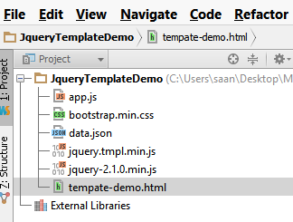 The tempate use ${} for substitute real value in markup.The tmpl() create the template build as Jquery function to attach data.The JSON file used for the demo is in demo.json file.It is listed below. [