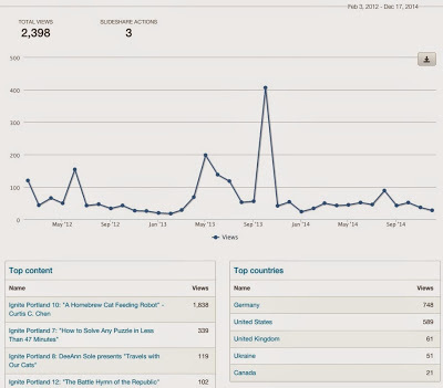 As you know, Bob, I gave a well-received Ignite presentation on our Homebrew Cat Feeding Robot setup in early 2012. Afterward, I also set up a web page, with every intention of updating it as we iterated through future versions: