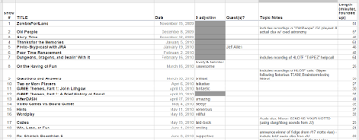Here's one last overshare: our podcast planning spreadsheet! Note that the proposed "topic notes" don't always match what we actually ended up talking about...
