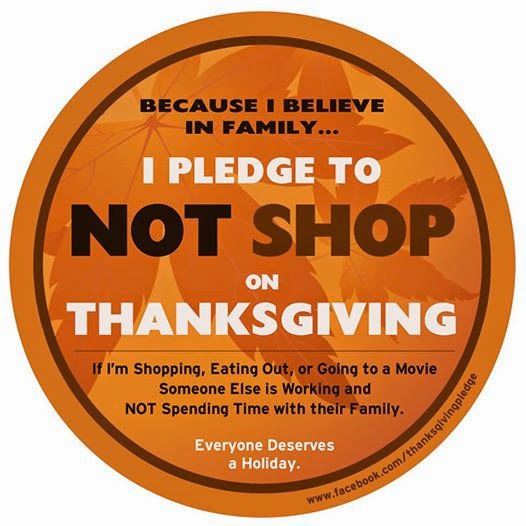 I would like to wish everyone a Happy Thanksgiving! I'm a firm believer in spending the holidays with loved ones, so on Thanksgiving I'm taking the entire day off. I am urging people to NOT SHOP on Thanksgiving day. The retailers are getting way out of hand. Please take this pledge with me.