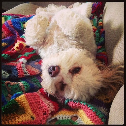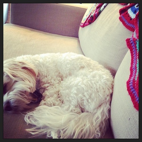 Personally, I’d settle into a dune on the beach but since that’s not possible in gloomy Seattle I’ll go with my good old (but really it’s new because I moved for the 5th time in 4 years in February—gah) sofa avec my fluffy white dog and the blanket my mom knit for me back when I was 18. So cozy!