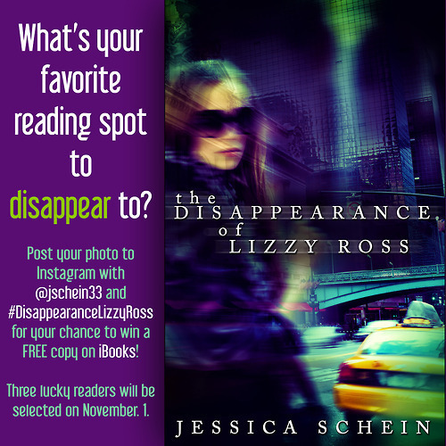 Post a photo of your favorite “reading spot to disappear to” on Instagram, along with @jschein33 and #DisappearanceLizzyRoss, and you’ll be entered to win a free copy from the iBookstore on 11/1!