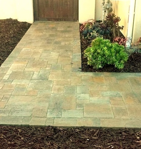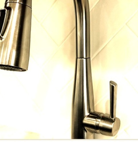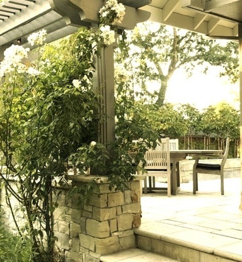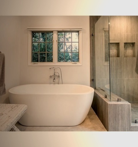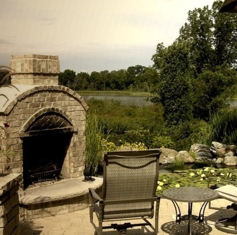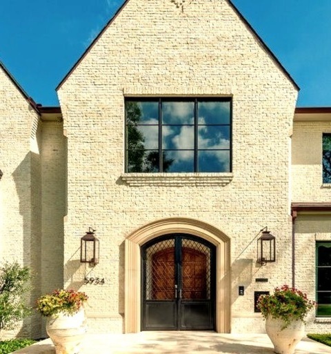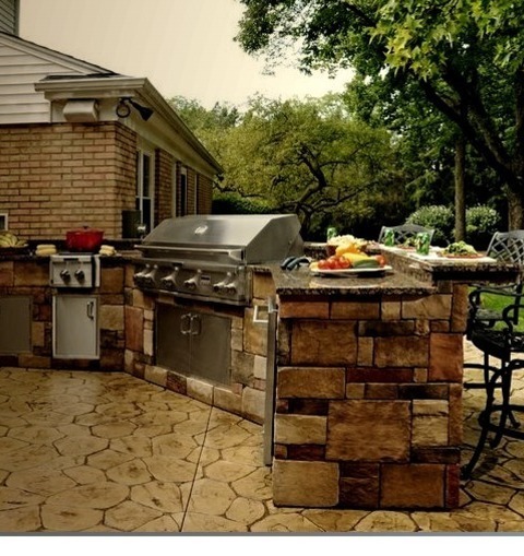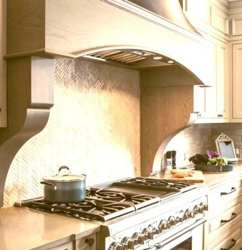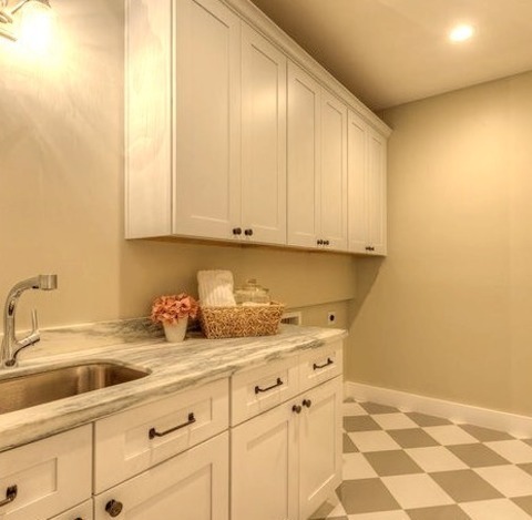 Huge country medium tone wood floor and brown floor kitchen pantry photo with a farmhouse sink, raised-panel cabinets, beige cabinets, quartzite countertops, beige backsplash, marble backsplash, stainless steel appliances and an island