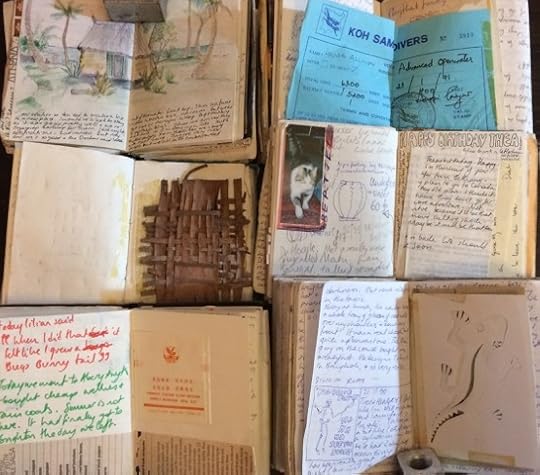 I wrote translations and useful phrases when I lived in Amsterdam, lists of places to visit in New Zealand, revision notes for my scuba instructors exam in California. There are photos and bus tickets, drawings, maps, messages and letters from loved ones. Time filled in transit sketching other passengers (see Seasick Men!) There are pictures by my young daughters and hair-tearing frustrations with my teenage daughters. There are the phone numbers and addresses of people I met fleetingly in a back-packers hostel and of people who remained life-long friends.