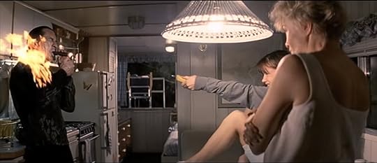 The failed trap prompts The Bowdens to go on the run to their houseboat, little realising Cady is under the car. He makes an appearance that night, pulling Sam off his feet on the deck with one arm and superhuman strength. This sets the tone for the ultimate showdown: Cady is comical, his ability to withstand injury absurd. But most of all his ‘trial’ of Sam is hilarious, as his ‘speaking in tongues’ when the houseboat eventually goes down even more so.