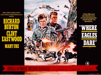 ReceptionWhere Eagles Dare received a Royal gala premiere in January 1969. Reviews were very positive – a typical quote, from Variety: “It’s more of a saga of cool, calculated courage, than any glorification of war.” – though some complained the mission-within-a-mission, and double-agent / triple-agent scenes were confusing. (I wonder how old Christopher Nolan was when he first saw this…) Many feared it would struggle at the box-office due to a growing anti-war movement, especially with Vietnam, but the film was a huge success.