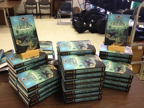 I was thrilled to get to spend THE LUCK UGLIES Release Day with the awesome students and teachers at the Seacoast Charter School in Kingston, New Hampshire. There were masks, books, great questions, and even secret banana messages. Thank you SCS and Happy Reading!