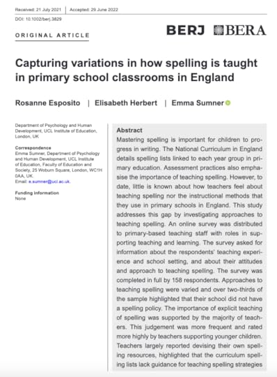 Is spelling being ‘taught’ or merely ‘caught’? Is the spelling test still king? This small survey of primary school teachers is accompanied by a very good explainer on the state of spelling instruction in England. Insights include formal spelling policies being rare, with a third of teachers not having professional development on spelling in the last five years. With some teachers gaining timely spelling development, is there a growing gap in classrooms when it comes to spelling ability? Read about spelling in primary…SEE HERE.