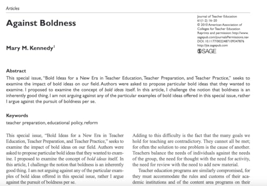 It is paradoxical perhaps to suggest that we should not be bold with teachers’ professional development. But, given the sheer complexity of the job, and the difficulties in changing our habits and practices, I think we should be greatly cautious about our ambitions for teacher professional development. Put bluntly, most attempts at PD fail. I think if every school leader read this challenging paper and reflected upon its call for more pragmatic, incremental change, then it would be a better bet that more teachers improve… SEE HERE. [If you’re intrigued about Mary Kennedy – you should be – read a great Harry Fletcher-Wood quick summary of her key work HERE.]