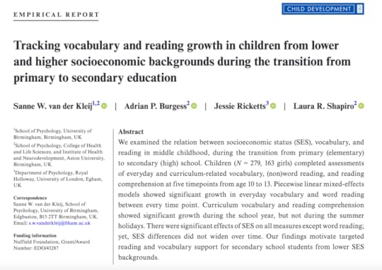 The insights into curriculum continuity at the primary secondary transition extend to reading and vocabulary in this valuable research study. Notions of a ‘summer slump’ did not appear and instead the researchers describe the curriculum ‘jump’ that pupils have to contend with at the transition. In many ways, they are positive findings that teachers can build on, but it does require a sensitive awareness to pupils’ language, the curriculum, and more…SEE HERE.
