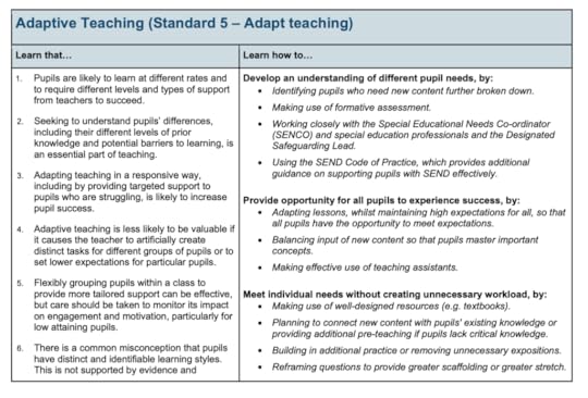 Adaptive teaching – recently enshrined in the Early Career Framework (ECF) – meanwhile, appears to better capture the nimble and necessary responses that are sensitive to a host of different responses the students generate as they grapple to understand the curriculum and develop their skills.