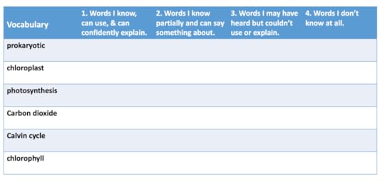 Alternatively, if we were teaching photosynthesis in science, we may begin the topic using a ‘Vocabulary diagnostic assessment’, like Dale’s word knowledge assessment: