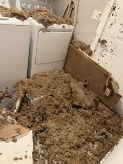 Following the hail storm in Davison last week, apparently, there was a roof leak unbeknownst to Dr. Steve and Marilyn Anthony (former District Superintendent on the Eastern Michigan District). They woke up Saturday morning to a laundry room full of a caved-in ceiling. The repair/restoration crew took out more ceiling yesterday.
