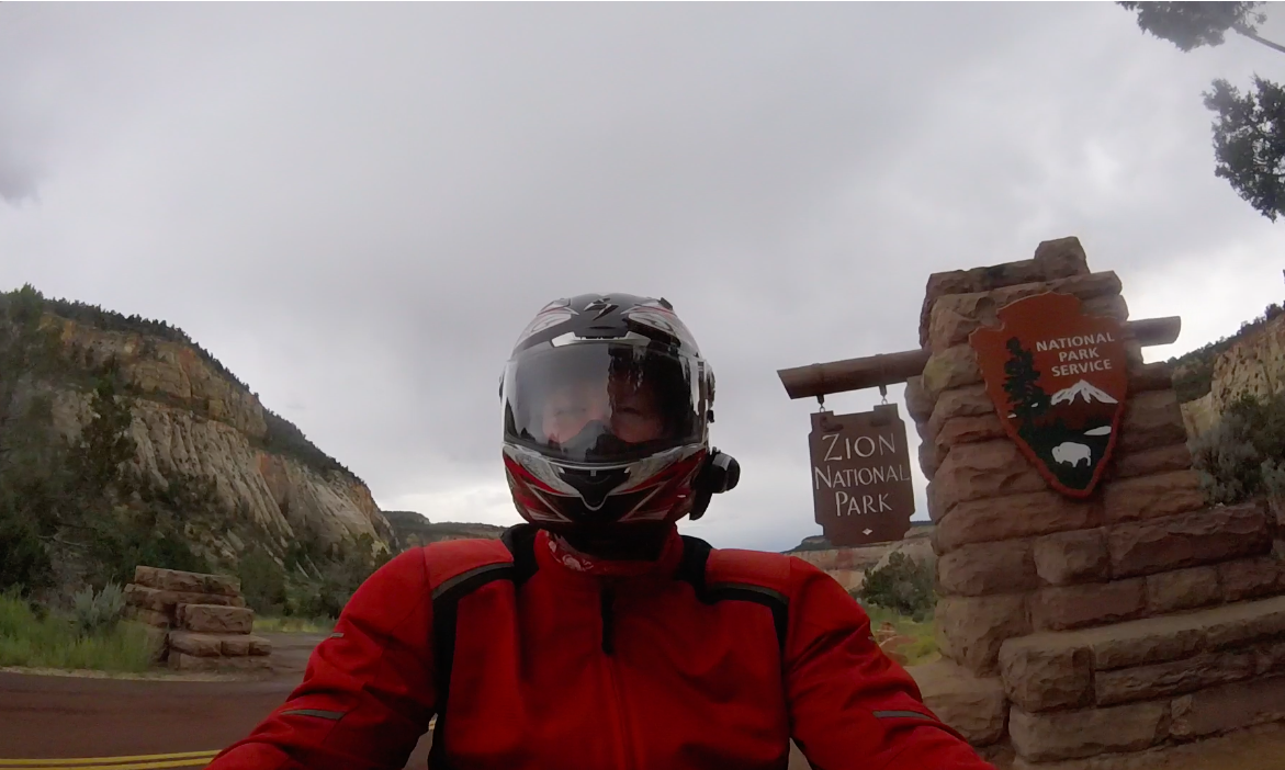 Zion motorcycle selfieAfter a long day of riding we enjoyed dinner (topped off with pie) and headed to bed. My riding buddies were traveling in different directions the next day. I would be traveling solo to meet my grandson.A thunderclap woke me up at 0454. I could hear the rain pelting the windows and checked the radar. The only storm in Utah was right over my head. Fortunately, I had recently purchased some good rain gear, and now my ounce of prevention was worth a pound of cure. By 0600 the worst of the rain had passed and I climbed on my bike in the dark. Tom waved at me from his hotel window as I pulled out of the parking lot and rode off into the storm. I had an appointment to meet my first grandson, and was determined not to let a little rain stop me. However, I must admit that I took things a bit slower than usual, especially when I passed flashing signs warning of deer. Would I make it without incident or accident? Would meeting my first grandson be all that I hoped it would be?