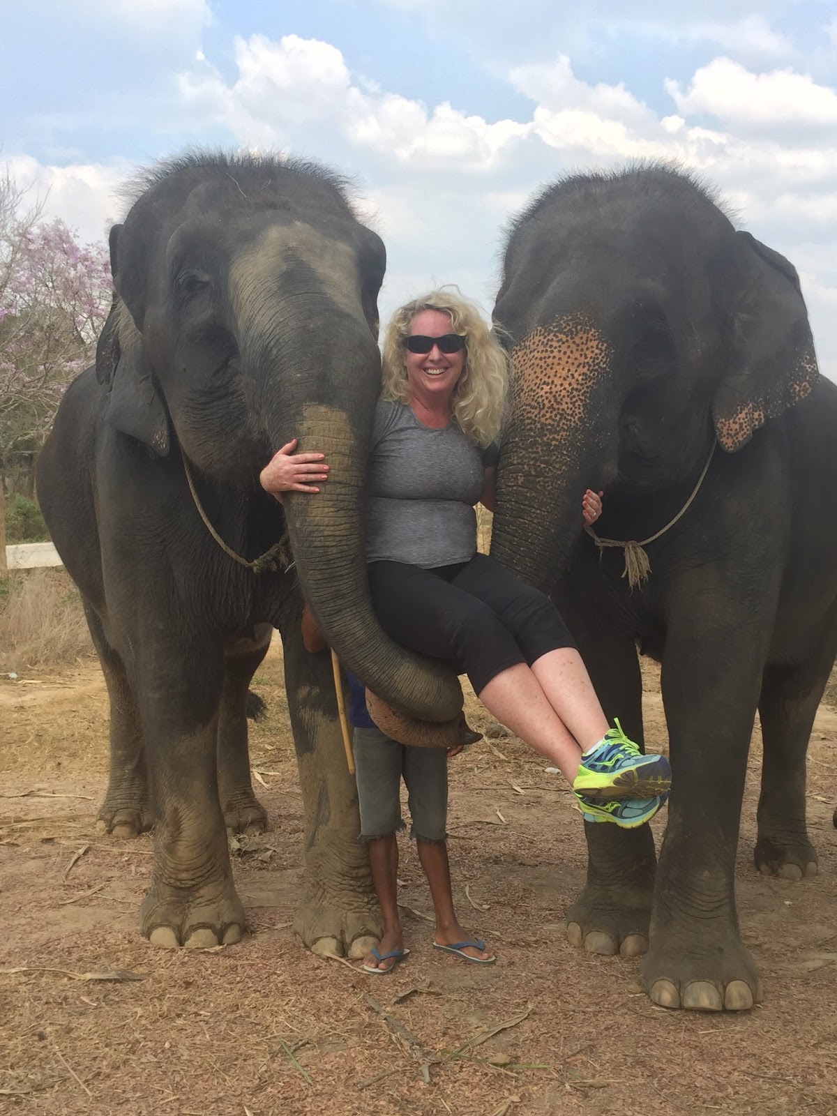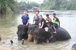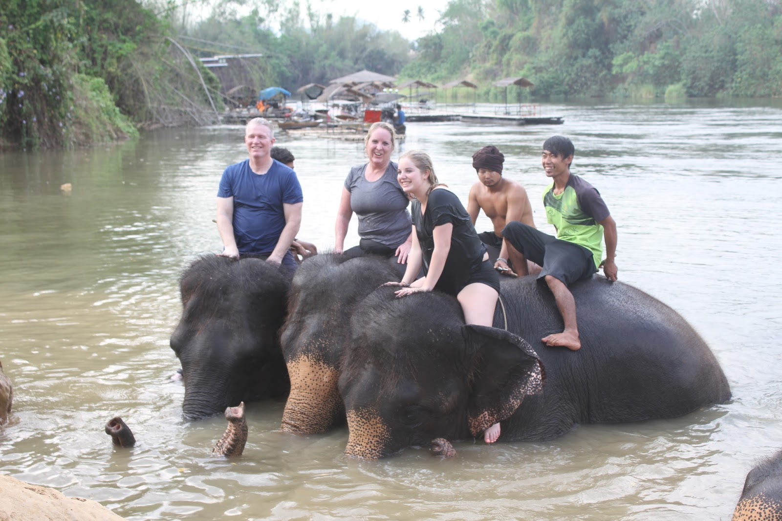 We topped off the day by riding elephants bareback along the banks of the Kwae Noi River. As we approached the lumbering beasts with bananas, their long trunks greeted us like groping hands. I climbed aboard Mayura, my ride for the day, straddling her neck with her coarse hair poking at my legs and her ears flapping against my hips. The trainer grunted and she sauntered forward to follow the other elephants, but every chance she got she stopped to eat, pulling up small trees and clumps of grass. The trainer dismounted and I sat atop of that great beast feeling completely out of control. I knew no commands. I had no bridle or saddle. I was keenly aware that had she wanted to, Mayura could have yanked me from her back with her trunk and ripped me limb from limb. Instead, she was content to pull saplings out of the ground from their roots and get me soaking wet in the river. I was a helpless passenger in this adventure into the unfamiliar.