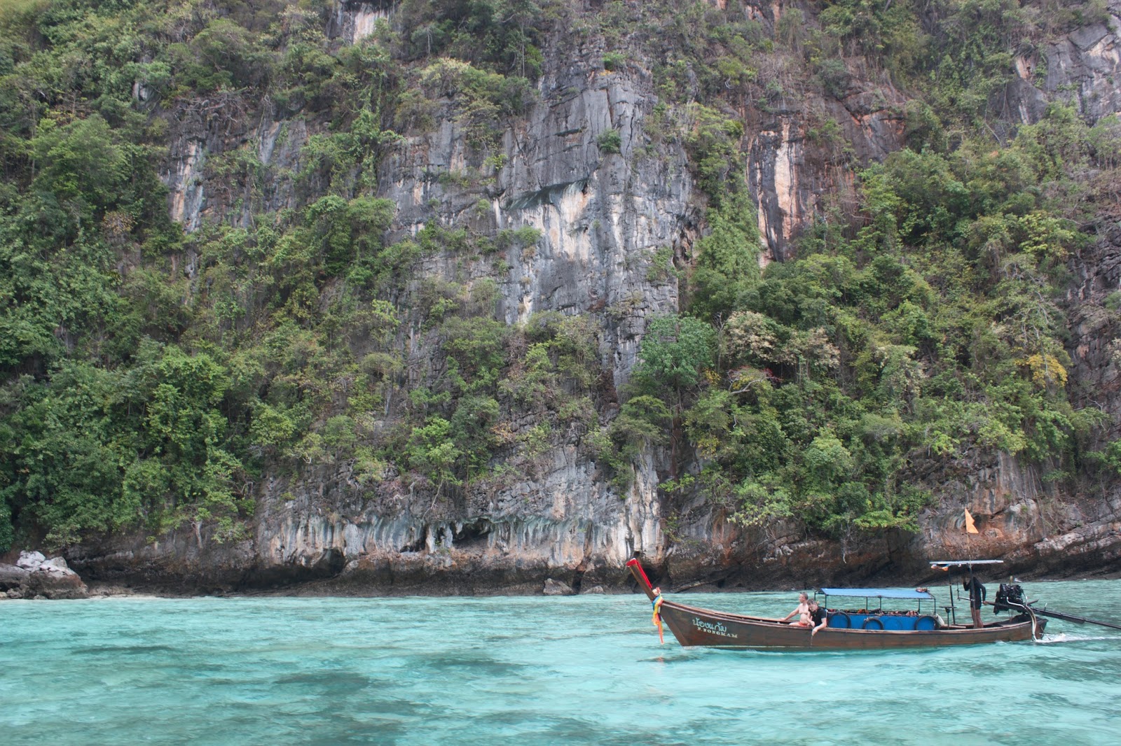 Unfortunately, the tour on Phi Phi Island was overcrowded and didn’t deliver the adventure experience we wanted, until the ride back to Ao Nang. On the way out that morning the water was smooth and the skies were clear, but when we started our return a squall line loomed on the horizon. The seas became rough and the wind whipped at our faces as we headed towards the storm. We were at the mercy of the capable Captain and his First Mate as we ploughed forward into the waves. I was sitting at the back of the boat with the sound of the two outboard motors pounding in my ears as the waves continued to build and crash over the side of the boat on top of me. Each time we crested a wave with the bow of the boat I got soaked in the back. For thirty minutes the warm water of the Indian Ocean pummeled me and soaked me through and through and I laughed a nervous laugh as we headed into the teeth of the afternoon shower. By the time we pulled into port, the rain was coming down in sheets, but we were all laughing at the thrill of the ride.