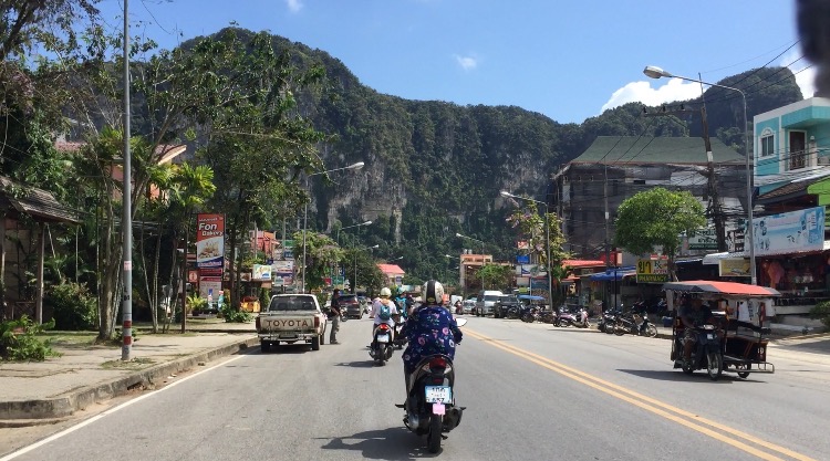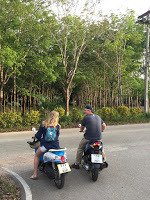 Riding in Ao NangOur first day in Krabi and Ao Nang began with a little slower pace. Our villas were nestled in the countryside away from all the hustle and bustle of the town. After breakfast we ventured into Ao Nang to stroll along the beach but found ourselves peppered by shop owners hawking their wares. The streets were filled with motorcycles and scooters creating a cacophony of revving two-cycle motors and the air smelled of lingering oily exhaust. Not wanting to be left out of the fun, we rented a couple of scooters for the afternoon and were soon dodging in and out of traffic along the beach on the wrong side of the road. By the end of an exhilarating afternoon cruising around on two wheels, I was starting to find my bearings, and we decided to rent them again the last few days of the trip.