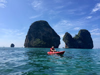 The last day we rode our scooters back down to the beach and hopped a long tail boat over to Railay Beach. This gorgeous beach boasts white sand with the consistency of brown sugar, clear blue waters, and great kayaking. We kayaked out to the nearby limestone islands and explore the caves carved by the ocean. The lack of waves made for great kayaking, but monotonous beach time. After a few hours we headed back to Ao Nang and toured the area on the scooters enjoying the afternoon sun.