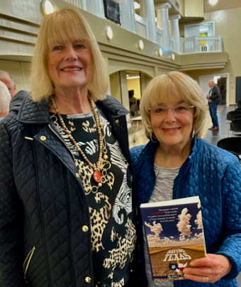 Nancy sold copies of all three of her books Friday at the Senior Scholars at Queens Expo. Susan Gronquist, right, bought “Saving Texas” and “Winning Texas,” the first two books in the Annie Price, Investigative Reporter, trilogy. The third book is coming out later this year.