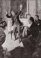 Barker (shown here on the extreme left) comes across as a little more physical than Holmes but is nonetheless a capable amateur detective. In some respects he comes across as a homage to the most successful Holmes clone - Sexton Blake - beyond the fact that he had a moustache where Blake (as far as I know) did not. It surprises me that no one has yet taken it upon themselves to subject this character to the pastiche treatment. I know that I am not up to the task so I hope that someone else can pick up this particular baton.