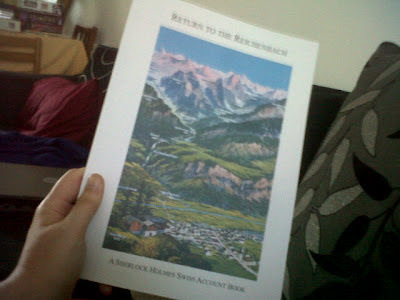 Hot off the press and "modelled" by Carrie Chandler (the book's mastermind) we have the Sherlock Holmes Society of London's booklet to accompany this year's Swiss Pilgrimage.