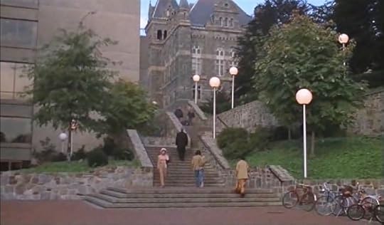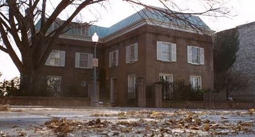 With the Exorcist, William Friedkin could have found a house to film in, a flight of steps in another city and a university campus five states away. Simple editing would have brought everything together, but for once there was no need.Author William Peter Blatty set his novel in a genuine location and plotted the story around real places - everything in the film is as he described. The MacNeil house in the novel is right where it’s supposed to be – number 1600 Prospect Street - and so are the precipitous steps beside it. The only necessary change was a fake extension, containing Reagan’s bedroom, that had to be added to the left elevation (above). This was constructed to position her window over the steps and make it more believable that two people could fall from there.The house shutters and brick gateposts are now painted black and black wooden fencing has replaced the railingsThe campus of the Jesuit university is around the corner from the house, the desecrated church – Dahlgren Chapel - is part of this, and pretty much everything we see on screen can be found in an area of Georgetown that covers about a quarter of a mile. All apart from Nineveh in the opening scenes - that’s quite a bit further away and religious people with guns make it difficult to visit and photograph.