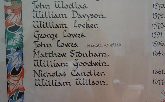 One of his most infamous killings took place in 1645. John Lowes was the Reverend at All Saints Church in Brandeston for fifty years, until Hopkins convicted him of witchcraft, tortured him and hung him. The ornate village sign even shows the vicar's corpse dangling from a gibbet with (for some peculiar reason) a bat fluttering above it in the foliage. A rather weird way to greet visitors to the village.