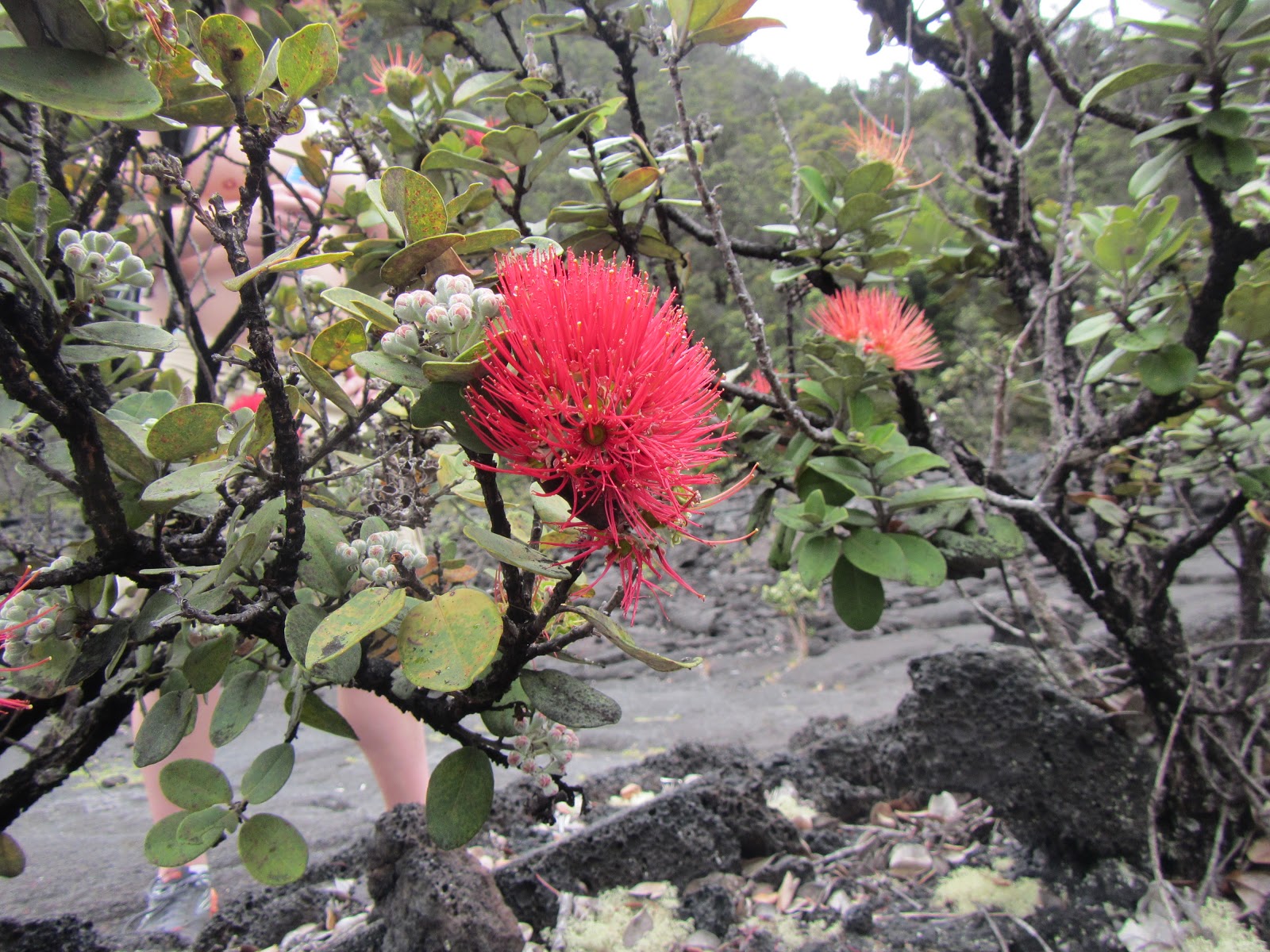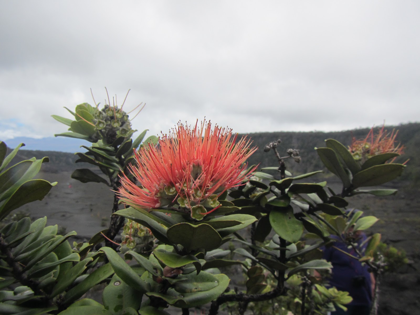 According to Koa (our guide from the Kalapana lava tour), red flowers like this one are the most common ones on the ohi'a lehua tree. Orange and yellow ones are extremely rare.