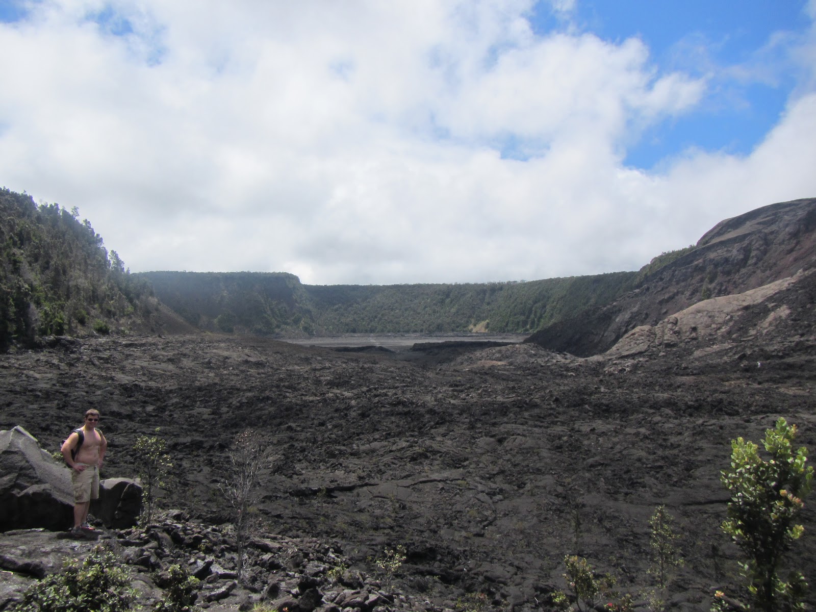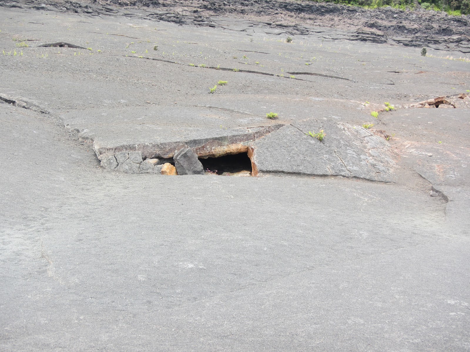 On day 4 of our trip, Rachael and I went to the Volcano National Park in Volcano, HI. The first thing we saw was the Thurston Lava Tube. A lava tube is essentially what is left behind when lava flows and cools on the outside (forming rock) and the inside stays hot and gooey and keeps flowing. What you get is a hollowed-out cave thingy that you can walk through.