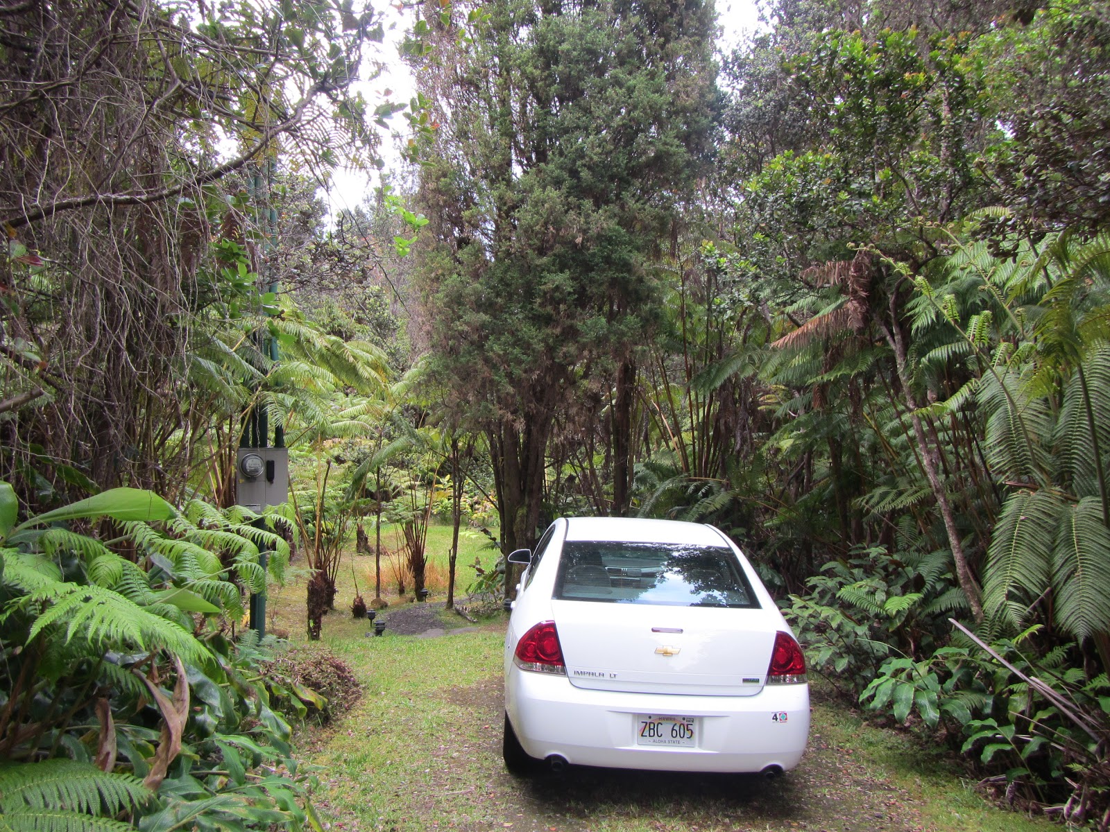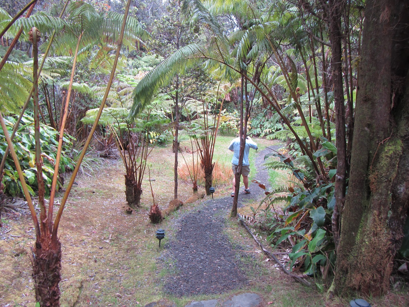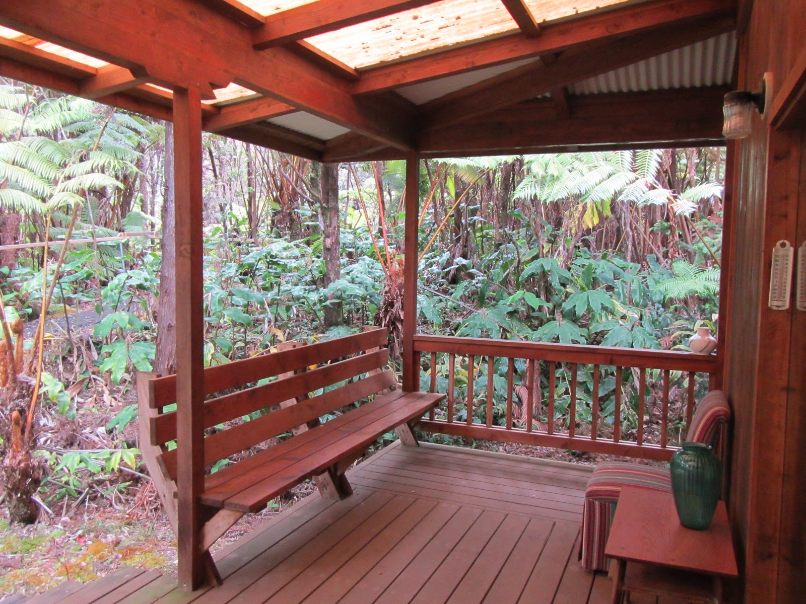 It's about 20 degrees cooler in Volcano because of the increase in altitude, and the climate is really different too. We picked up our keys and checked into a jungle cabin that has nearly fulfilled my childhood fantasy to go to Jurassic Park.