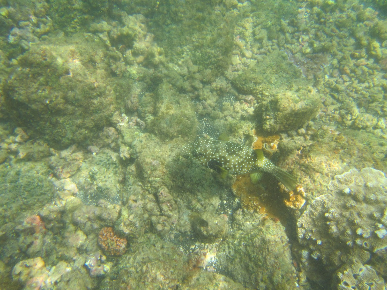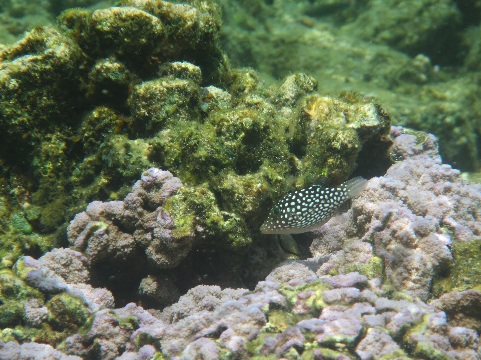 This morning we went snorkeling at Richardson Ocean Center, a beach park in Hilo. The waves were a little choppy so the water was cloudy and I didn't get the kind of photos I got at the Kapoho Tidepools. But I did figure out that my camera has an underwater mode, so that helped. I still got a couple good ones though.