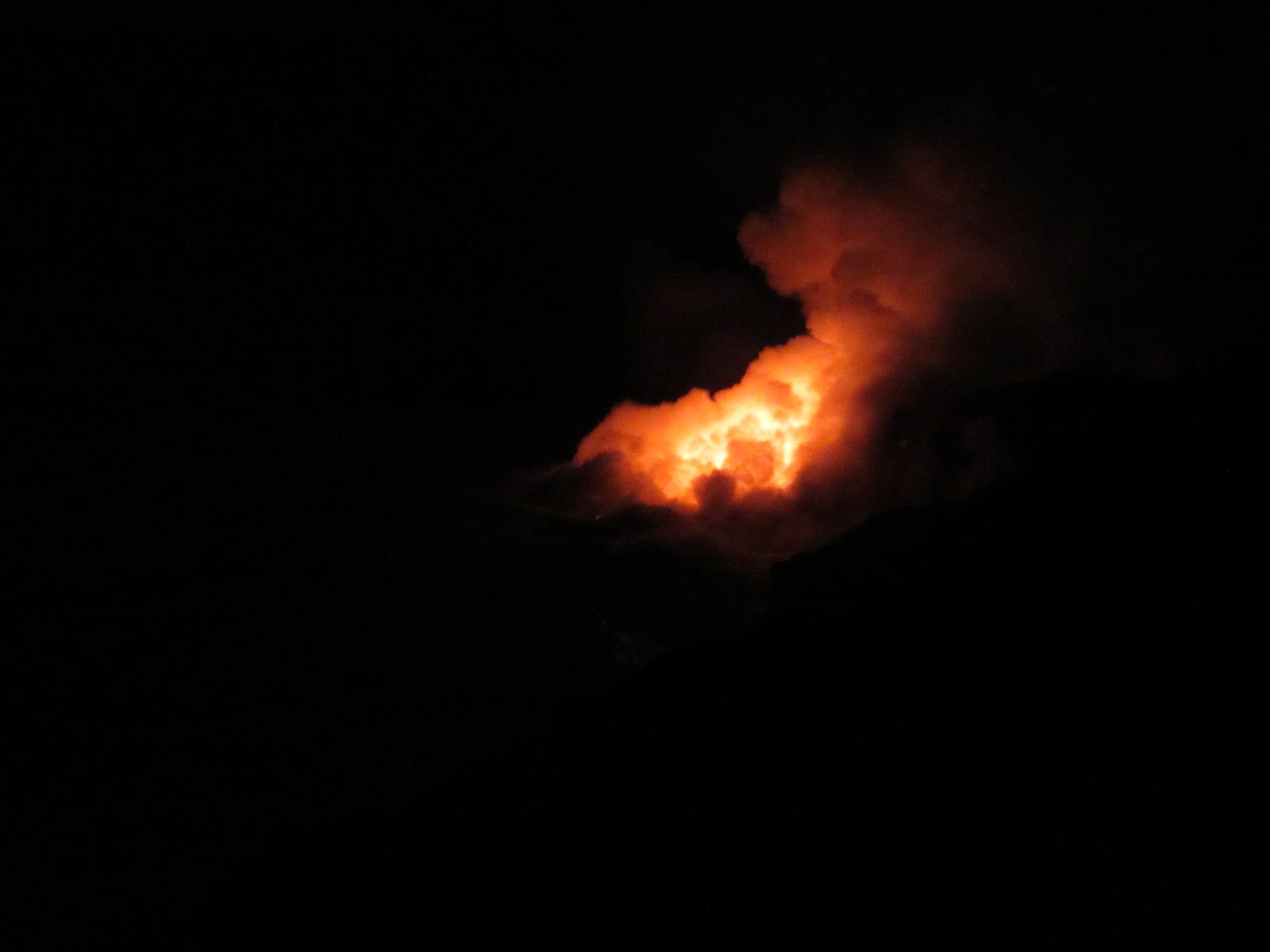 Next we hiked up to where the surface flows are visible. Mind you, this part of the hike and the ENTIRE hike back are in pitch black darkness. With small flashlights. Over those same treacherous lava fields.
