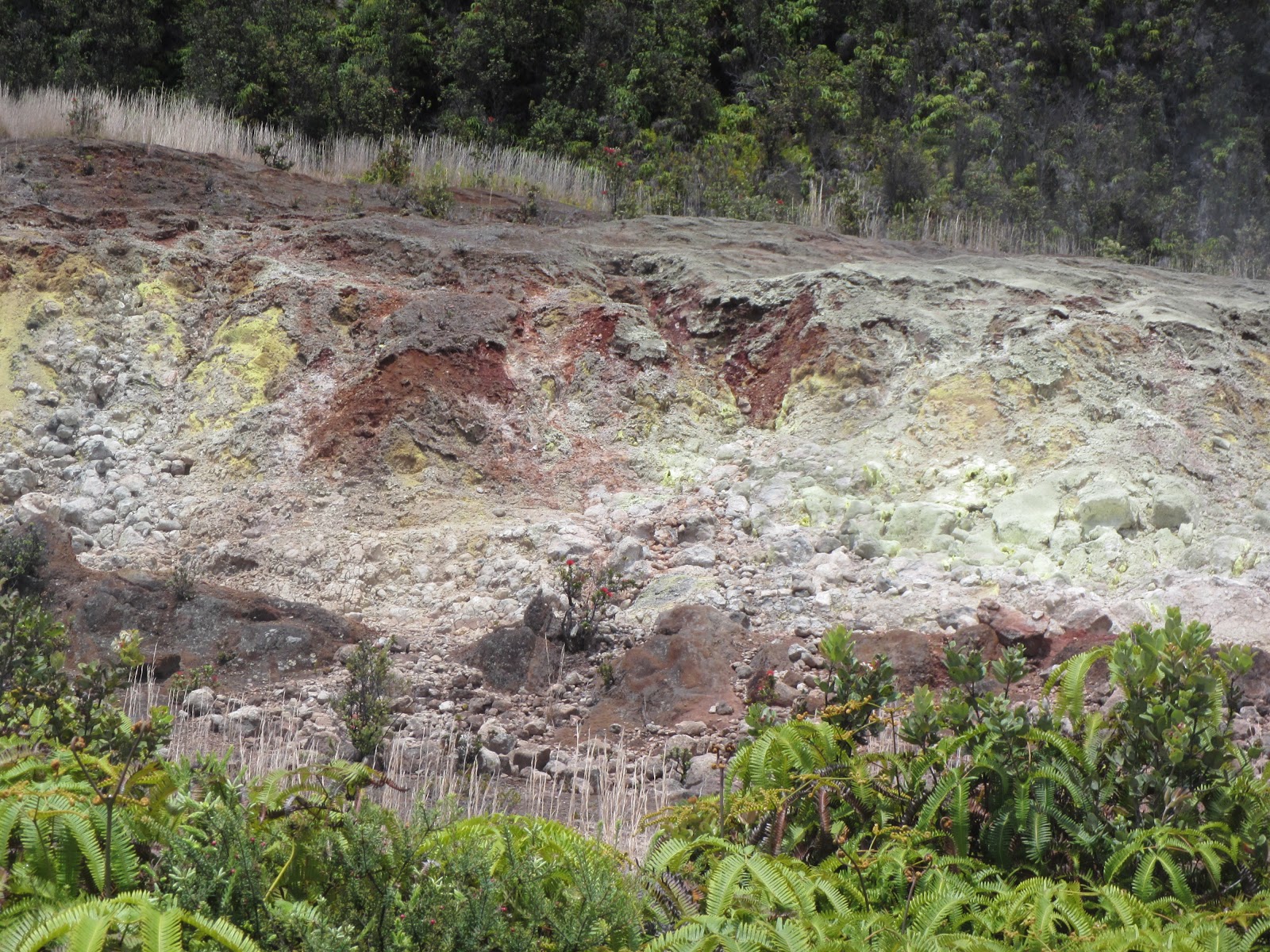 The different striations of stuff from various lava flows. Lava, grass, older lava, etc.