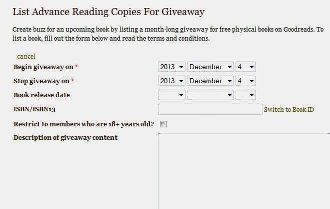 Click on the "List a giveaway" link, and it will take you to this screen: