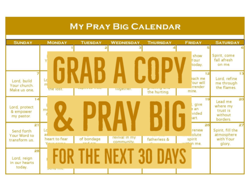 To help you get started, I’m sharing a copy of My Pray Big Prayer Calendar with you. Join the Wildfire Faith Community and grab a copy in our Faith Fuel Library. Print out your copy and start each morning inviting God to strengthen your step, breathe fresh wind into your weary spirit, and help you shine brightly.