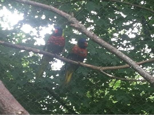 These little lorikeets were not interested in visitors' nectar and seed cups. Too full!