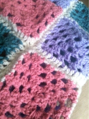 You know granny squares right? Everyone's grandmother must have had one of these hanging off the back of the sofa. A large, crocheted, flowery affair?