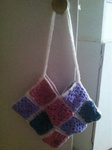 Not anymore! Here's what I taught myself to make. First I had to learn how to crochet the squares, which was tough because I'm a knitter and not typically a crochet-er. I'm learning to become bistitchual however! Then I had to find a way to bind them together; Pinterest suggested the mattress stitch or whip stitch. Then I had to make the handles and attach them, which was simple since I just crocheted them. It turned out pretty cute! I still should line it if course but I am ready to move on to the next bag, socks, or sweater....