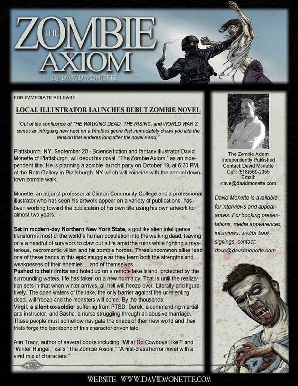 ... and the Kickstarter campaign for the book is set to start tomorrow! Excited to see some action on this. I gotta tell ya. If you want to check out the Facebook page, click here: "The Zombie Axiom" Facebook Page Make sure to give it a LIKE while you're there! I'll post more info on the Kickstarter tomorrow. Stay tuned!