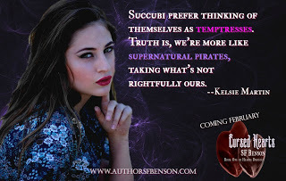 Title: Cursed Hearts, Book One of Hearts DuologyAuthor: SF BensonGenre: Young Adult Paranormal RomanceCover Designer: Funky Book DesignsExpected Publication Date: February 28, 2017Blurb: Sixteen-year-old Kelsie Martin wants every girl’s dream—to date and fall in love with the perfect guy. There’s a few things standing in her way. Surging powers that cause her to kill every boy she kisses, and the fact that succubi aren’t supposed to fall in love. She reluctantly accepts her calamitous fate when a new guy, Victor Duquette, enters her life. He’s hot and they have similar interests. Could Victor be the one Kelsie’s been waiting for? One forbidden kiss resurrects a century old curse—drastically changing her life and twisting her idea of happily ever after. Tagline: “Some temptations are worth the risk.”