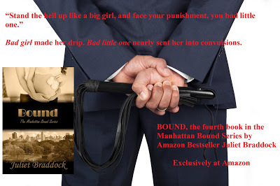 BOUND , the fourth novel in Juliet Braddock’s “Manhattan Bound” series of four books, is available at most major e-book retailers on October 11.