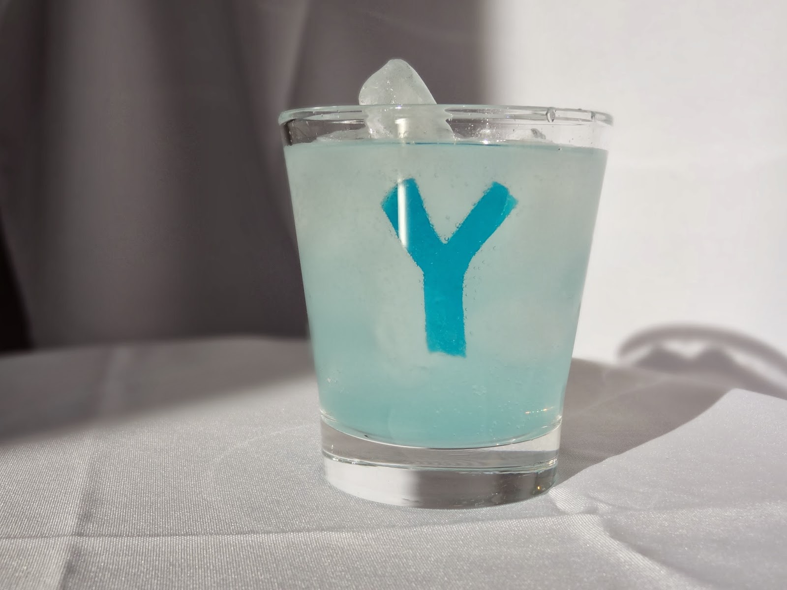 This was favored by the crowd who likes bourbon. It's a splash of cream soda mixed with bourbon. The garnish is honeycomb! It adds sweetness, plus represents the ever-present hexagons in Clan.