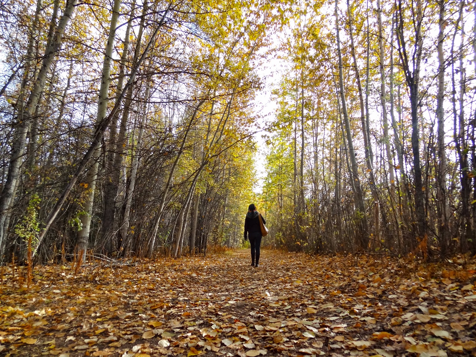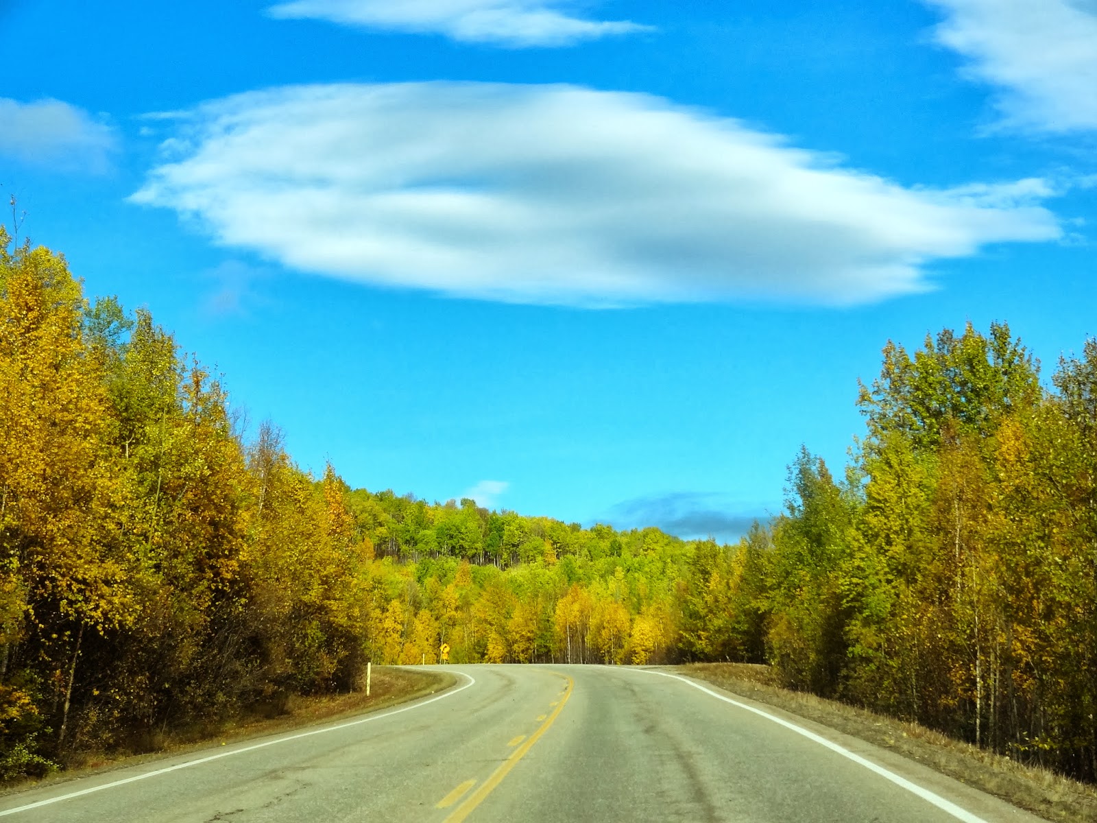 Back from Fairbanks, Alaska! We flew into Anchorage and then took a 6-7 hour road trip to Fairbanks, which is north of Anchorage and Denali. We went for the solar max; the solar activity is supposed to peak this fall. Alas, when we were there, it was supposedly the weakest solar max in 100 years and we didn't see the northern lights this time. At least in 2011, we did see the lights, so it wasn't too terrible to miss it this year. On the bright side, the autumn leaves were beautifully gold and bright everywhere. We had a pretty surreal walk through the birch tree forest.